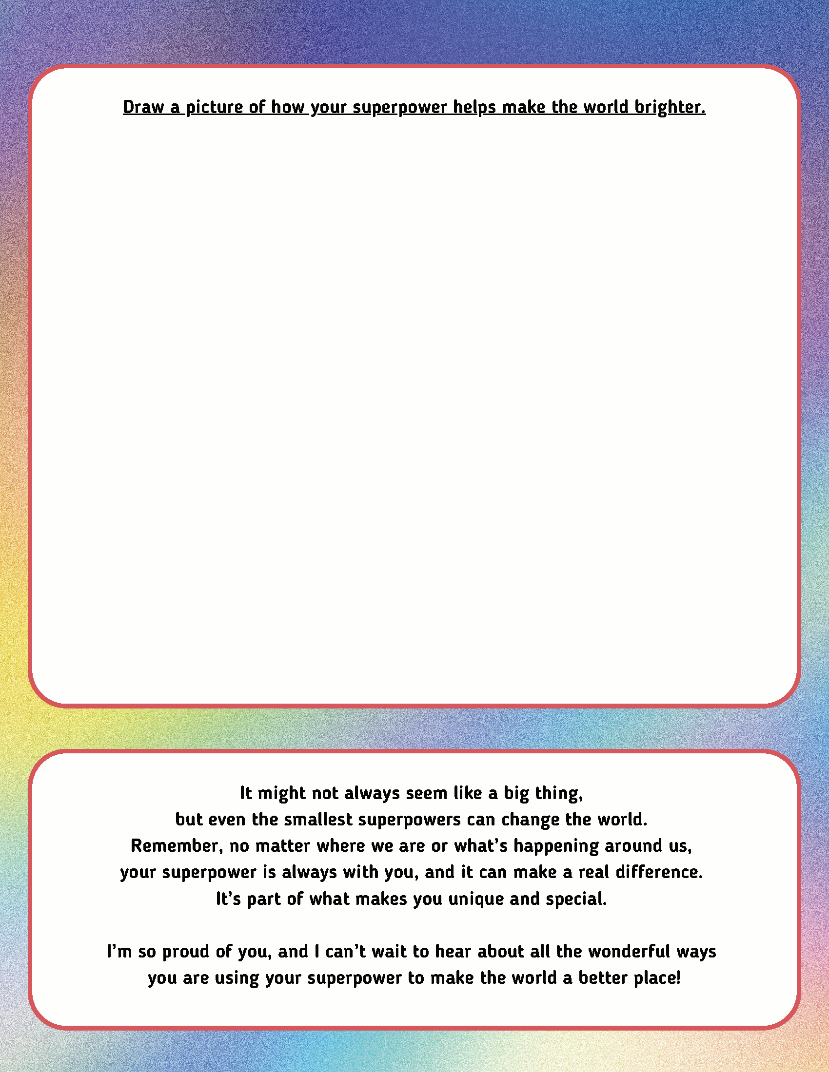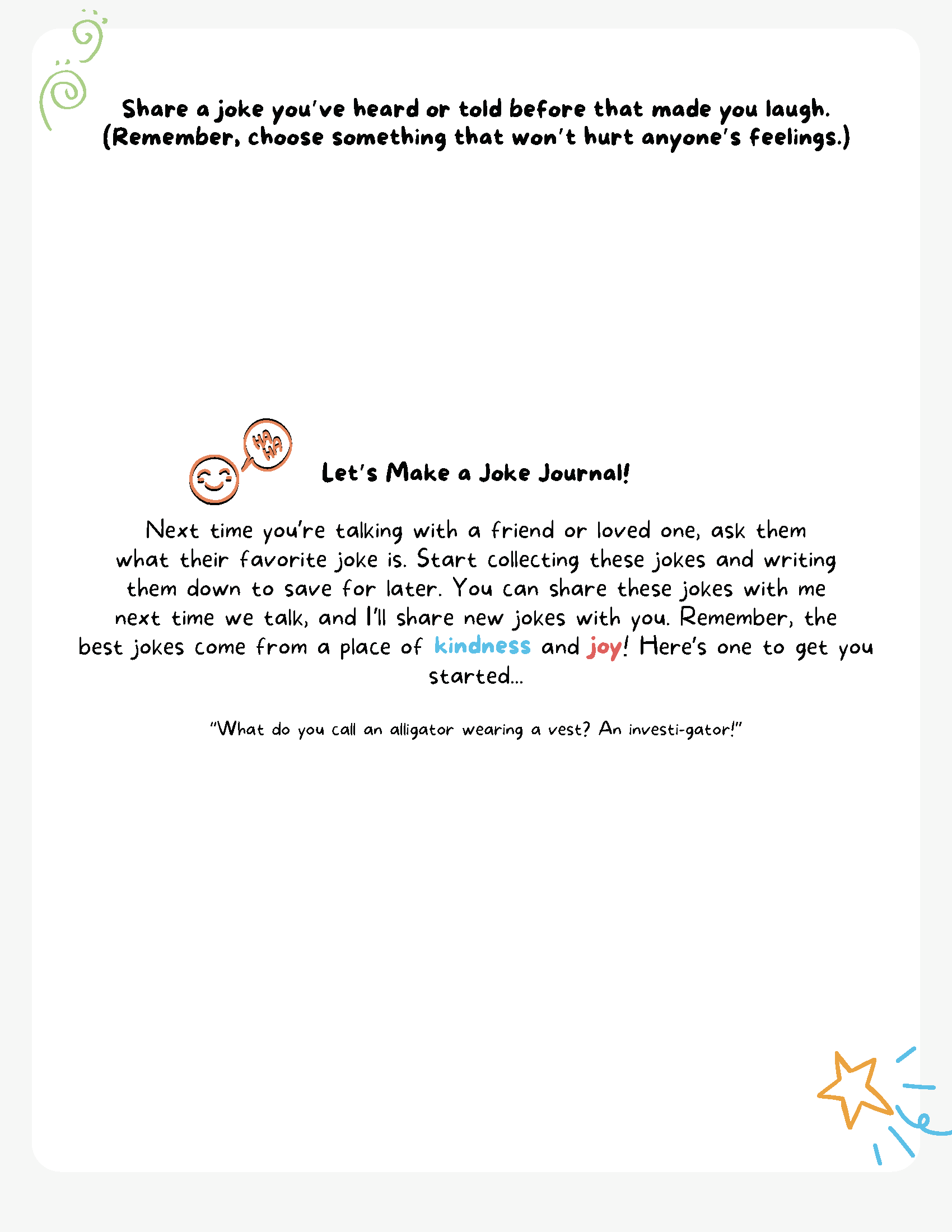 This project is a work in progress. We welcome collaboration with individuals and organizations working with justice-impacted families. If you use these activities, please let us know how you’re using them and how we could improve them. If you have any ideas for activities we could incorporate into this series, let us know!