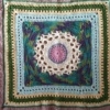 Soft hand-crocheted lap blankets, approximately 28″ square.